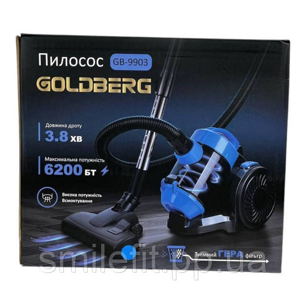 Пилосос вакуумний з контейнером для збирання пилу на 3 л GOLDBERG GB-9903 6200 Вт Потужний. Колір: синій, Київ