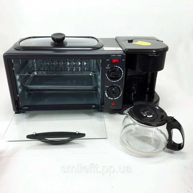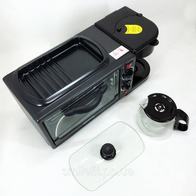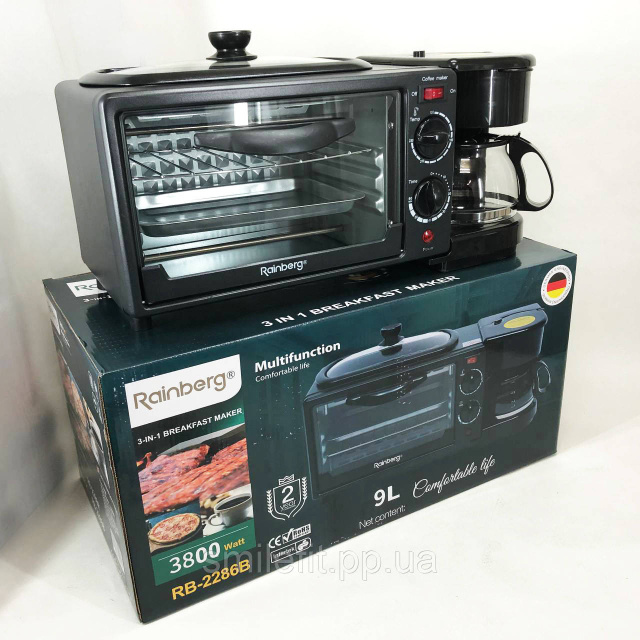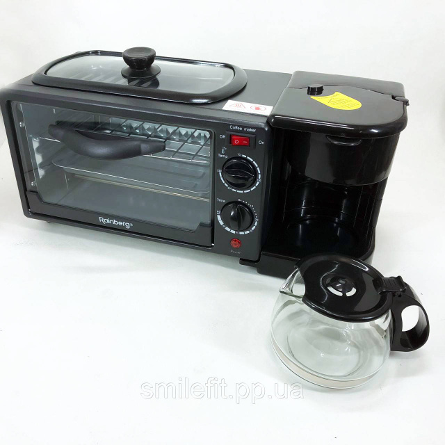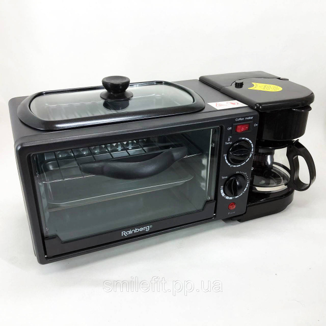 Електрична піч настільна для кухні для випікання з кавоваркою і сковородою гриль із кришкою 3в1 (машина для сніданку) Rainberg RB 2286B 3800 Вт – це