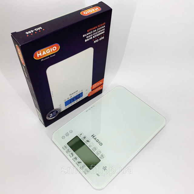 Яскраві кухонні ваги MG-696 з якісним фотопринтом — чудове доповнення до вашої кухні. Такі ваги дозволяють зважувати довгі продукти, наприклад спагетті або продукти у великогабаритній упаковці.