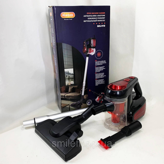 Вертикальний пилосос MG-910 повністю відповідає сучасним вимогам зручності та якості прибирання. Вага такого пилососа, його маневреність і компактність дозволяють комфортно проводити прибирання в будь-яких приміщеннях.