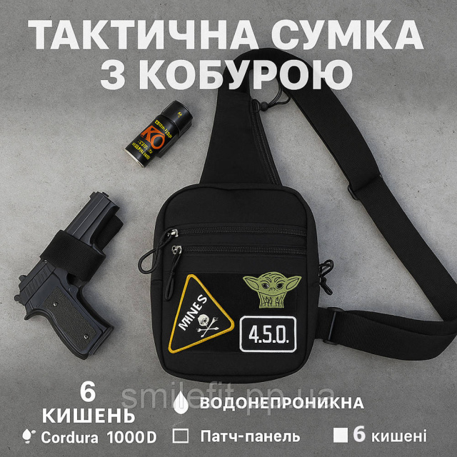 Тактична чоловіча сумка з кобурою Cordura 1000D – 6 кишень, чорна, Київ