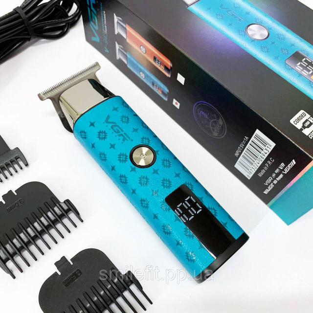 У комплект входять 3 змінні насадки, що дозволяють регулювати довжину зрізу та підлаштувати триммер під різні зони догляду, від щетини до акуратного окантування. Інтуїтивний LED-дисплей відображає рівень заряду та поточний режим роботи, забезпечуючи зручність та контроль у процесі використання. VGR V‑943 BLUE— це стильне, просте та функціональне рішення для тих, хто цінує якість та зручність у догляді за собою.