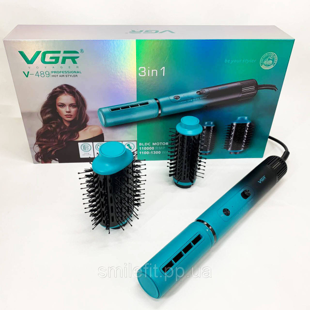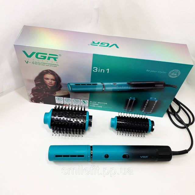 Фен-щітка VGR V-489— це багатофункціональний стайлер, що поєднує в собі можливості фена та щітки, що дозволяє одночасно сушити, завивати та укладати