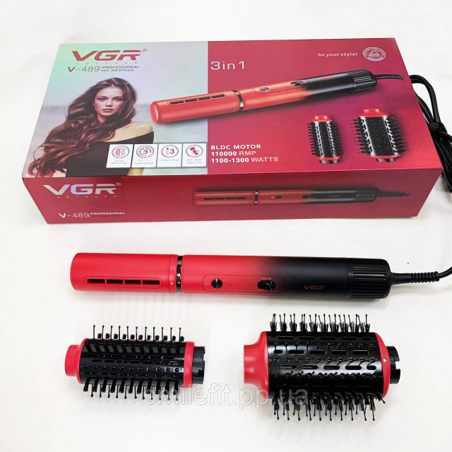 Фен-щітка VGR V-489— це багатофункціональний стайлер, що поєднує в собі можливості фена та щітки, що дозволяє одночасно сушити, завивати та укладати волосся.
