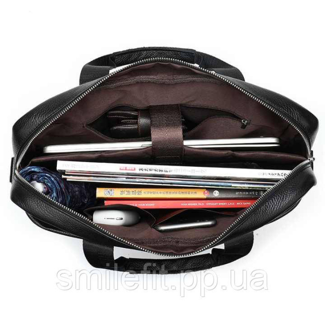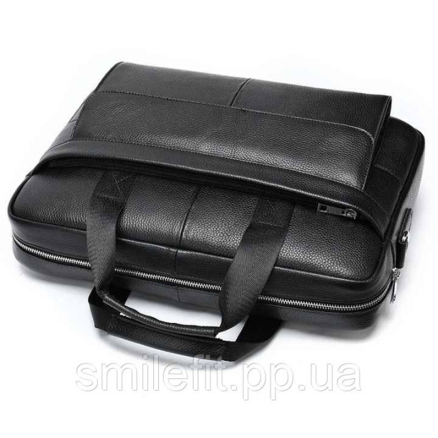 Вишукана та містка чоловіча сумка, виконана з преміальної натуральної шкіри (флотар) чорного кольору. Виріб поєднує у собі стильний дизайн та високу функціональність, має надійну металеву фурнітуру та зручну організацію внутрішнього простору. Ідеально підходить для роботи, ділових зустрічей чи повсякденного використання.