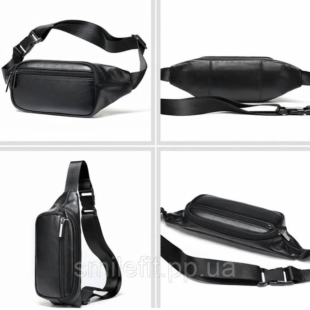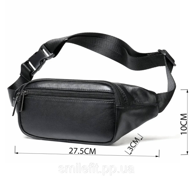 Шкіряна бананка чорна міні – чоловіча та жіноча сумка з натуральної італійської шкіри, Київ