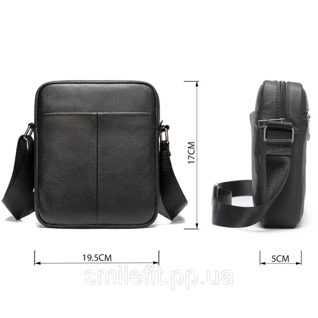Чоловіча шкіряна сумка месенджер компактна чорна з натуральної шкіри флотар, Київ