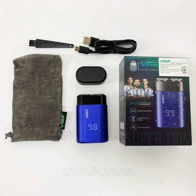 Електроритва VGR V-347 оснащена міцними лезами з нержавіючої сталі та LED-дисплеєм, який відображає рівень заряду та режим роботи. Вбудований літій-іонний акумулятор ємністю 500 мАч забезпечує до 90 хвилин автономної роботи, а для повної зарядки потрібно лише 1 годину. Заряджання здійснюється через USB, що зручно як удома, так і у поїздках.