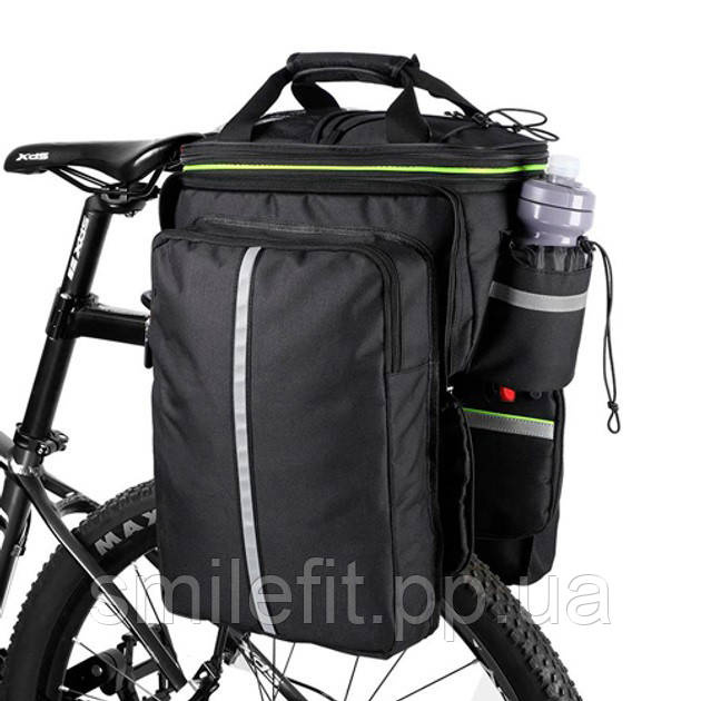 Сумка на велосипед об’ємом 25 літрів виготовлена з щільної тканини з покриттям, кріпиться на задній багажник велосипеда.