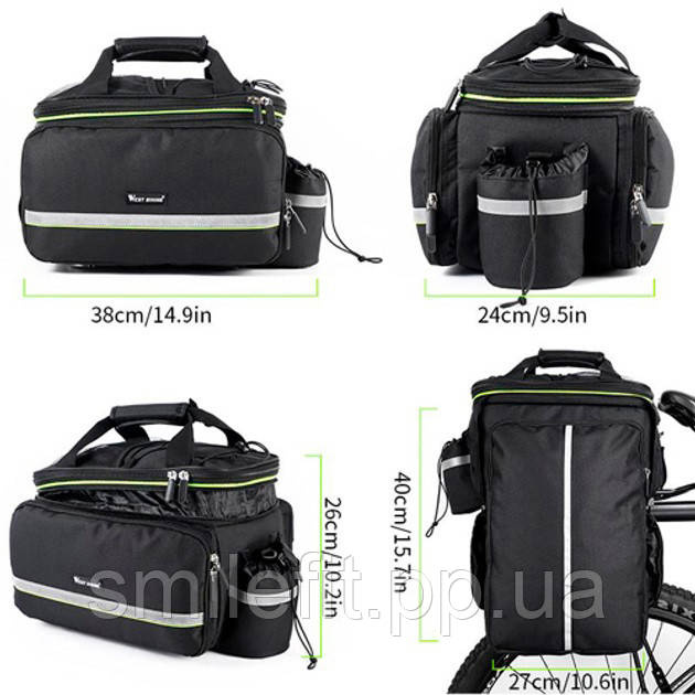 Велосумка на багажник 950G сумка-штани завдяки своїм якостям користується заслуженою популярністю серед тих, хто любить багато та довго подорожувати на велосипеді. Вона надійно захищає ваші речі від бруду та пилу, тому підходить для різних погодних умов.
