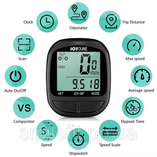 Пристрій для любителів велосипедних прогулянок значно допоможе під час тривалих подорожей. Цей спідометр фіксує поточну швидкість, максимальну та середню швидкість велосипедиста. Ви можете встановити швидкість на спідометрі найбільш комфортну для Вас і орієнтуватися за показаннями приладу, щоб дотримуватися заданих параметрів. Також на циферблаті Ви зможете побачити кількість кілометрів, які Ви проїхали за день та за весь період подорожі. Спідометр вбудований годинник.
