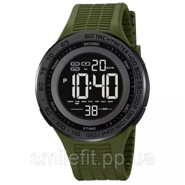 SKMEI 2155AG — це цифровий годинник із мінімалістичним, але виразним дизайном, який ідеально підходить для спорту, подорожей або щоденного використання. Чорний корпус із темно-зеленим ремінцем створює збалансований мілітарі-образ, а великий дисплей із чіткими цифрами дозволяє зручно зчитувати час та іншу інформацію навіть на ходу. Безель з маркуванням тахіметра додає спортивного характеру.