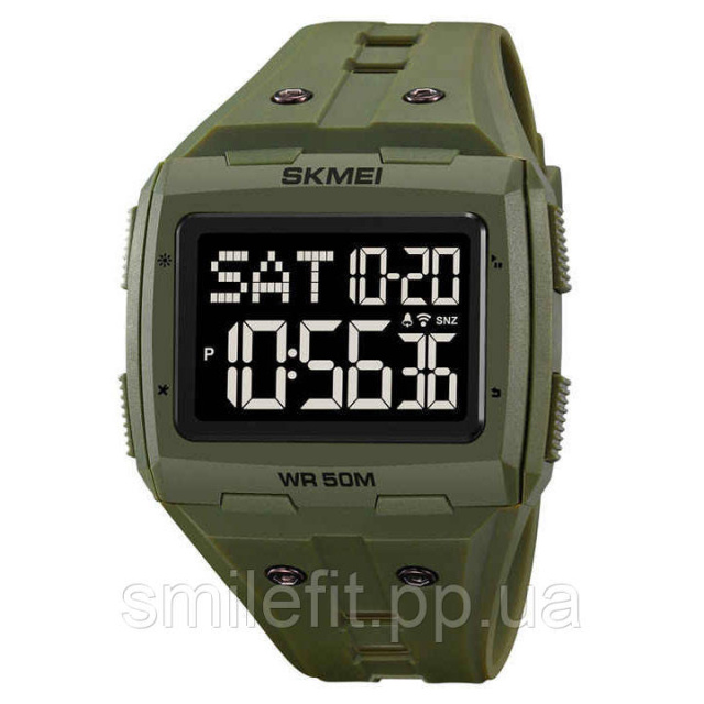 Годинник SKMEI 2186AG — це надійний цифровий аксесуар у мілітарі стилі, створений для поціновувачів практичності та лаконічного дизайну. Модель вирізняється компактним квадратним корпусом у захисному зеленому кольорі, що гармонійно поєднується з повсякденним або туристичним одягом.
