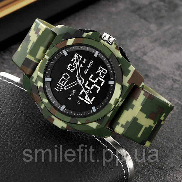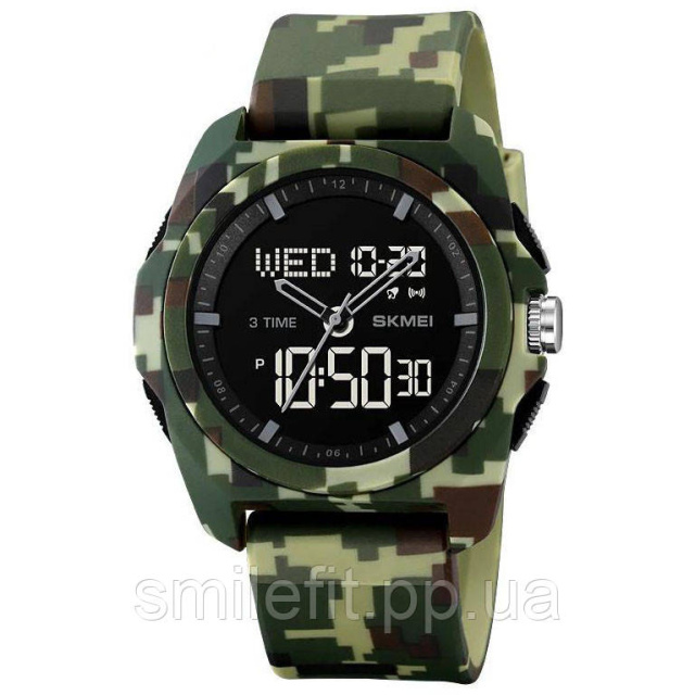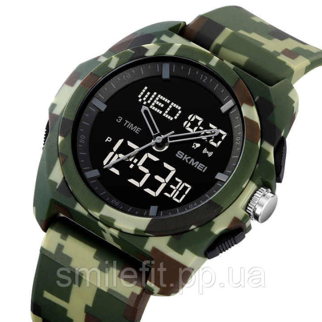 Годинник SKMEI 2199CMGN — це вибір тих, хто цінує практичність, витривалість і унікальний зовнішній вигляд. Камуфляжний дизайн у цифровому стилі надає йому виразного характеру, що ідеально підходить для активного відпочинку, туризму або військового стилю в одязі. Комбінація аналогової та цифрової індикації дозволяє швидко орієнтуватися в часі, а контрастний дисплей забезпечує відмінну видимість у будь-який час доби.