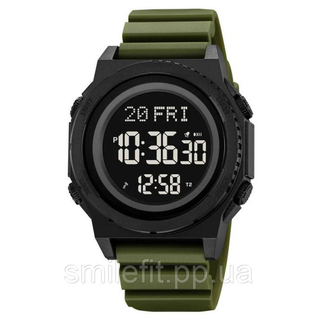 Годинник SKMEI 2357AG — це поєднання сучасного дизайну та багатофункціональності для активного способу життя. Модель виконана у військовому стилі з корпусом чорного кольору та зеленим ремінцем, що робить її ідеальним вибором для outdoor-активностей, туризму або повсякденного використання. Висококонтрастний цифровий дисплей дозволяє легко зчитувати дані навіть у складних умовах освітлення.