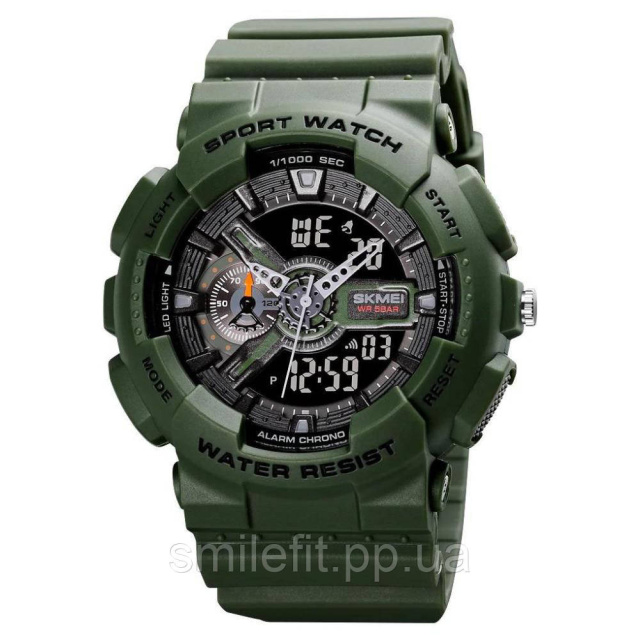 Годинник SKMEI 1688AG — це потужний спортивний аксесуар, створений для активних чоловіків, які цінують функціональність, витривалість і стиль. Модель виконана в захисному зеленому кольорі з масивним корпусом, що виглядає агресивно й мужньо. Аналогово-цифровий дисплей дозволяє зручно зчитувати час, а яскраве підсвічування забезпечує відмінну видимість у темряві.
