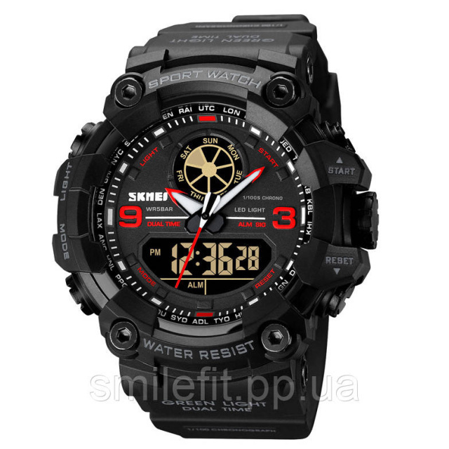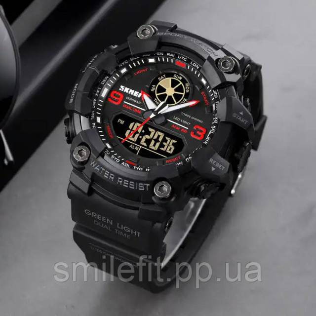 Годинник SKMEI 1818RD — це вибір справжніх шанувальників спортивного стилю з акцентом на функціональність та агресивний дизайн. Модель привертає увагу контрастними червоними елементами на циферблаті, потужним корпусом і яскраво вираженою графікою. Завдяки поєднанню аналогового та цифрового відображення, цей годинник чудово справляється з роллю практичного інструмента на кожен день та стильного аксесуара.
