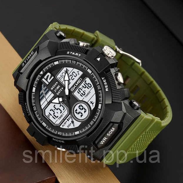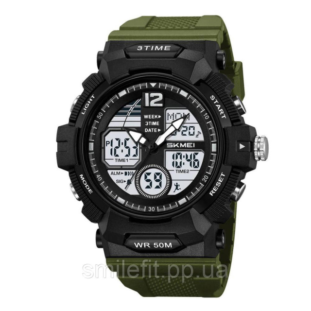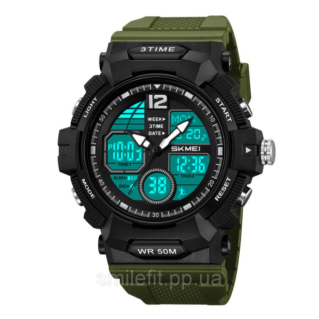 Годинник SKMEI 2354AG — це потужний і сучасний аксесуар для активних чоловіків, які цінують практичність і стиль. Його масивний корпус у поєднанні з насиченим зеленим ремінцем та багатофункціональним дисплеєм надає моделі військово-спортивного вигляду. Аналогово-цифрова індикація дозволяє легко орієнтуватися в часі, незалежно від умов навколишнього середовища.