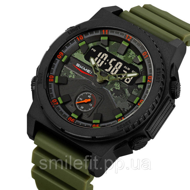 Годинник SKMEI 2355AG — це вдале поєднання брутального стилю, функціональності та витривалості. Завдяки комбінації аналогового та цифрового дисплея, ця модель дозволяє зручно слідкувати за часом у будь-яких умовах. Захисний корпус із міцного пластику та силіконовий ремінець у кольорі хакі роблять цей аксесуар ідеальним для активного способу життя, тренувань, подорожей або військового стилю.