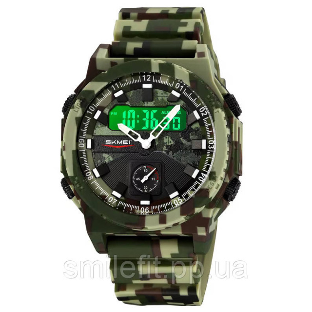 Годинник SKMEI 2355CMGN — це ідеальне поєднання військового стилю, функціональності та надійності. Його унікальний камуфляжний дизайн не тільки привертає увагу, а й чудово підходить для активного способу життя. Аналогово-цифровий дисплей дозволяє зручно відстежувати час у будь-який момент, а яскрава підсвітка забезпечує відмінну видимість навіть у темряві.