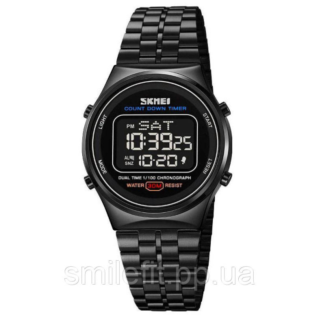 SKMEI 1882BKBK обладнаний усіма базовими функціями: показ часу, дати, дня тижня, будильник, секундомір, подвійний час та зворотний відлік. Завдяки LED-підсвітці, дані легко зчитуються навіть у темряві. Годинник має водозахист до 30 метрів, що робить його надійним супутником у повсякденному житті. Ця модель — чудовий вибір для тих, хто шукає стильний, але практичний годинник за доступною ціною.
