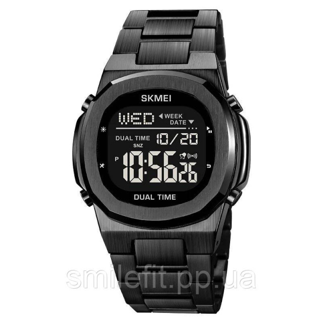 SKMEI 2004BKBK — це стильний цифровий годинник у повністю чорному кольорі, який вдало поєднує сучасний дизайн і практичність. Його корпус і браслет виготовлені з міцного металу з матовим покриттям, що забезпечує стриманий, але виразний вигляд. Великий екран з чітким контрастним дисплеєм дозволяє легко зчитувати інформацію навіть у русі, а завдяки підсвітці годинник зручний у темну пору доби.