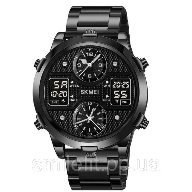 Годинник SKMEI 2212SBKBK — це стильний аксесуар для чоловіків, які цінують сучасний вигляд, багатофункціональність та надійність. Повністю чорний дизайн, масивний корпус і металевий браслет створюють потужне візуальне враження, ідеально підходячи для ділового стилю або щоденного носіння. Циферблат з текстурованою поверхнею доповнений цифровими дисплеями та двома аналоговими шкалами, що підкреслює технологічність і динамічність моделі.