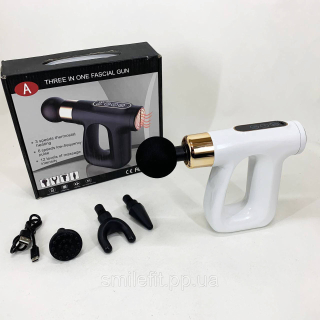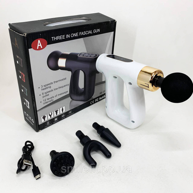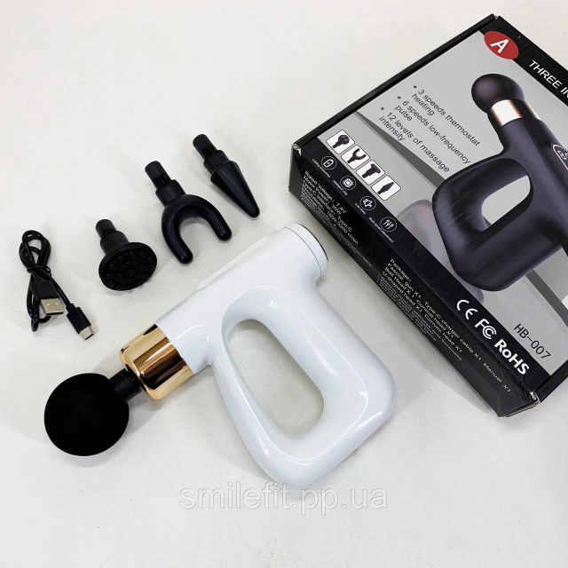 Ударний Перкусійний масажер для тіла та м'язів Масажний пістолет EM HB-007 акумуляторний білий, Київ