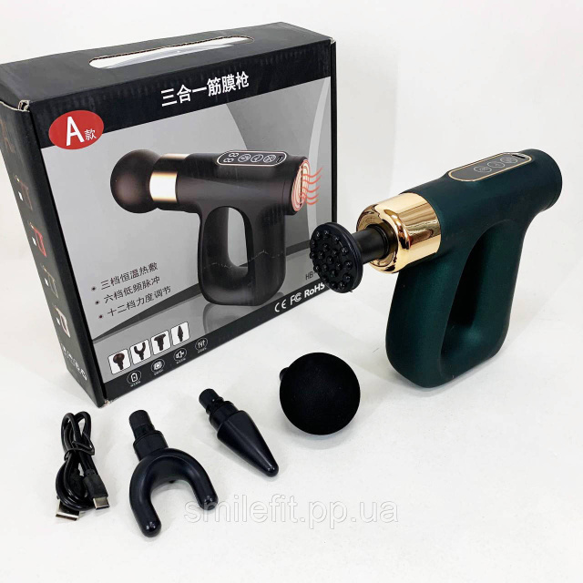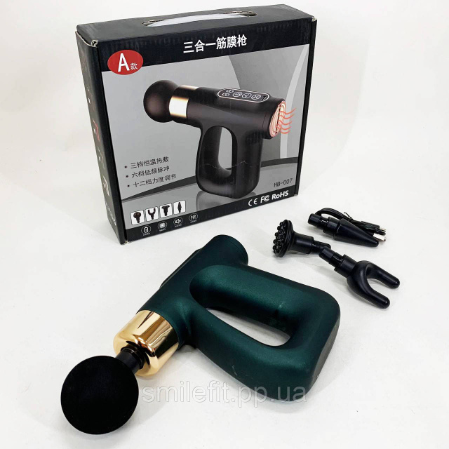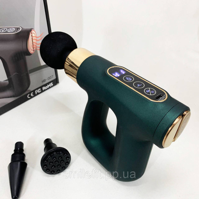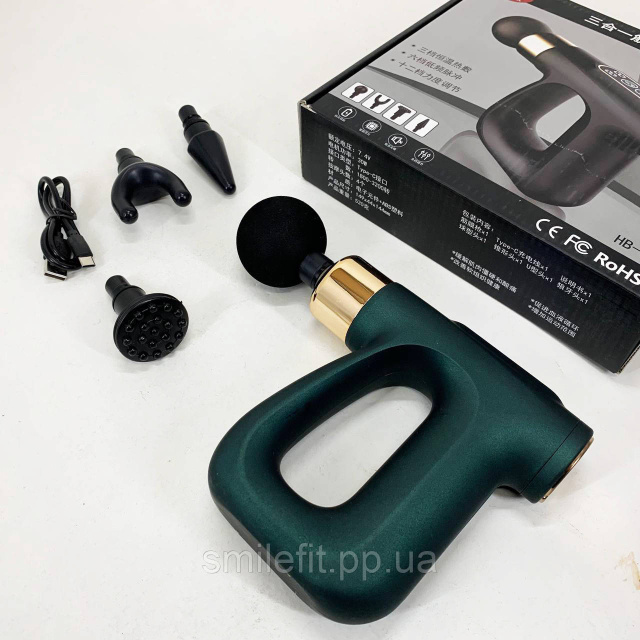Ударний Перкусійний масажер для тіла та м'язів Масажний пістолет EM HB-007 акумуляторний зелений, Київ