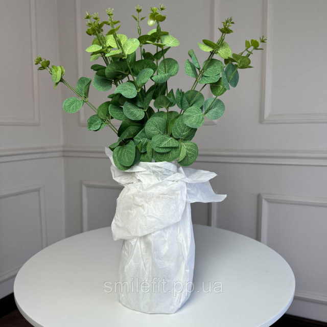 Такий букет підходить для декоративного оформлення дому, офісу, фотозон, вітрин або святкових композицій. Штучний евкаліпт не потребує догляду, не втрачає форму та колір з часом і зберігає привабливий вигляд незалежно від умов освітлення. Упаковка з 5 штук дозволяє створювати об’ємні композиції або використовувати гілки окремо для різних дизайнерських рішень.