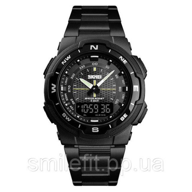 SKMEI 1370BKWT — це вдале поєднання класики та сучасної функціональності в одному стильному аксесуарі. Годинник має комбінований циферблат — аналогові стрілки гармонійно поєднуються з цифровим екраном, забезпечуючи максимальну зручність у використанні. Металевий браслет чорного кольору додає моделі солідності та робить її універсальною — як для офісного дрес-коду, так і для активного способу життя.