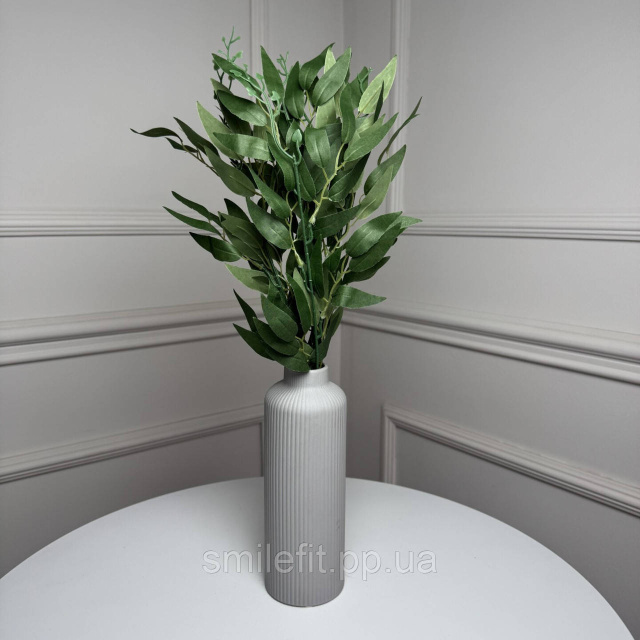 Штучний букет рускусу у природному зеленому кольорі виглядає свіжо та стримано, імітуючи живу декоративну зелень. Акуратні витягнуті листки з...