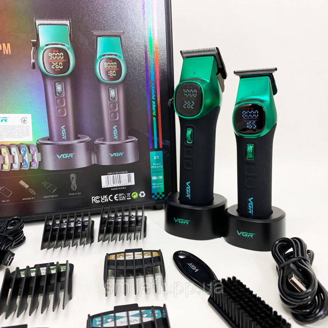 Комплект VGR 2 в 1 V-885 S2 GREEN, акумуляторна машинка для стрижки та триммер, Київ
