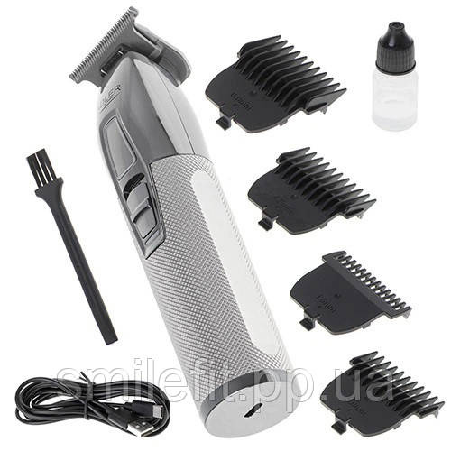 Це пристрій, який буде використовуватися в кожному будинку, де є любитель догляду за бородою та її вкорочування безболісним та швидким способом. Він не тільки функціональний, але й відрізняється цікавим та оригінальним дизайном. Пристрій живиться від літієвої батареї (1400 мАч), забезпечує швидку зарядку всього за 2 години через USB-кабель, а потім час безперебійної роботи до 120 хвилин. Завдяки цьому вам не доведеться часто заряджати тример, і він буде готовим до використання. Тример відрізняється керамічним лезом з титановим покриттям сірого кольору, яке дуже міцне і дозволяє точно вкорочувати і підрівнювати волосся. У комплекті чотири насадки для тримера: 1,5 мм, 3 мм, 4,5 мм та 6 мм, які полегшать контроль довжини волосся, бороди та вусів.