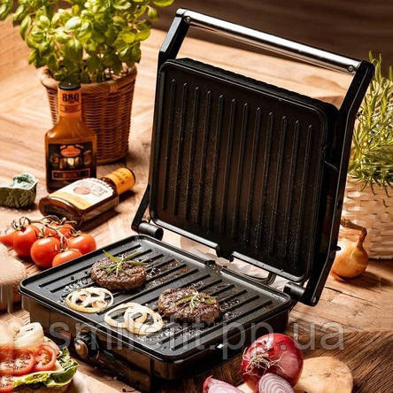 Електричний гриль не може залишитися непоміченим! Дана модель, виготовлена з нержавіючої сталі, виконана у чорно-сріблястому кольорі. Прилад стане справжньою окрасою кухні і, звичайно ж, радуватиме Вас чудовими стравами!