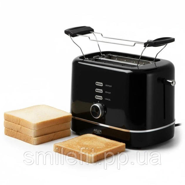 Тостер Adler AD 3224 black, 7 рівнів обсмажування, решітка для булочок, 850 Вт, Київ