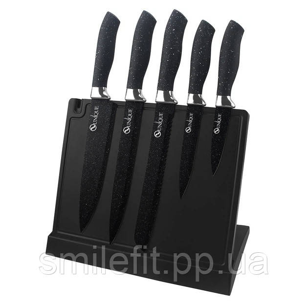Набір ножів UNIQUE UN-1841 з нержавіючої сталі з підставкою + точила 6 предметів, Київ