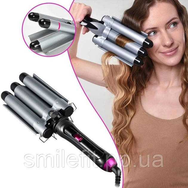 Потрійна-плойка для завивки волосся з потрійним нагріванням 65 Вт 220 В Domotec MS-481B з керамічним покриттям, Київ