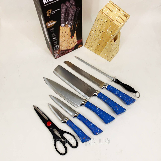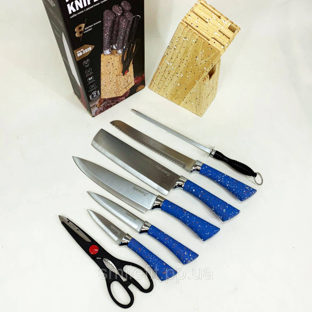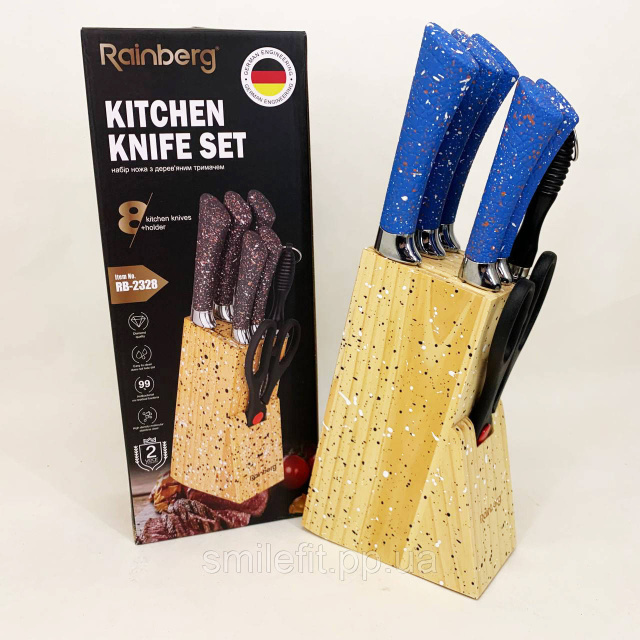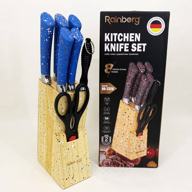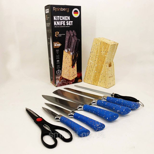 Набір ножів із нержавіючої сталі з основою Rainberg RB-2328 Blue, Київ