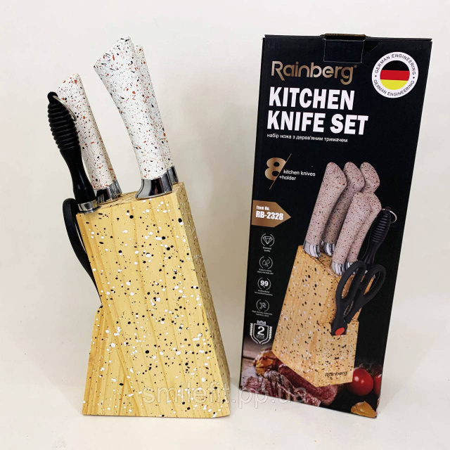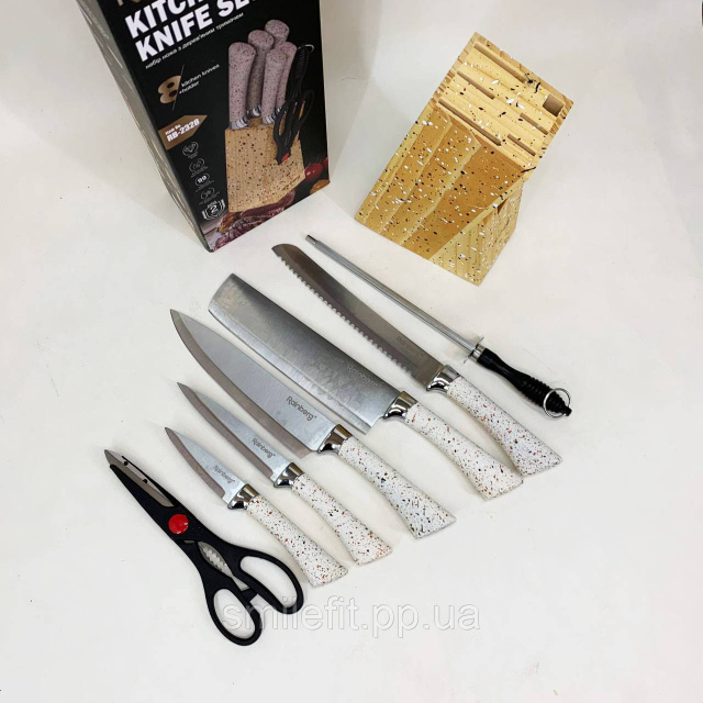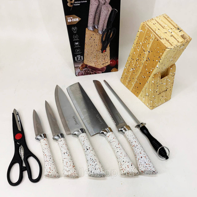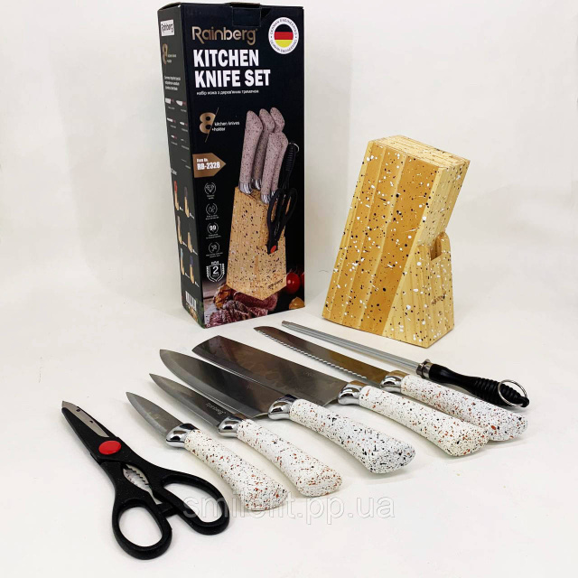 Набір ножів із нержавіючої сталі з основою Rainberg RB-2328 White, Київ