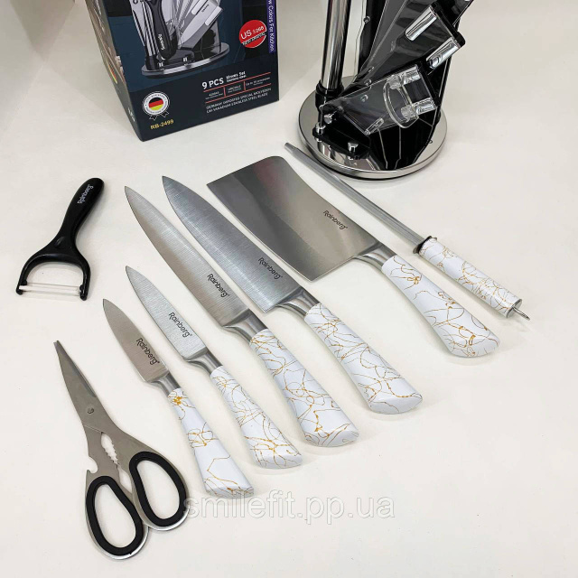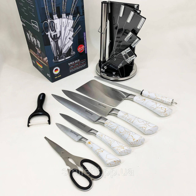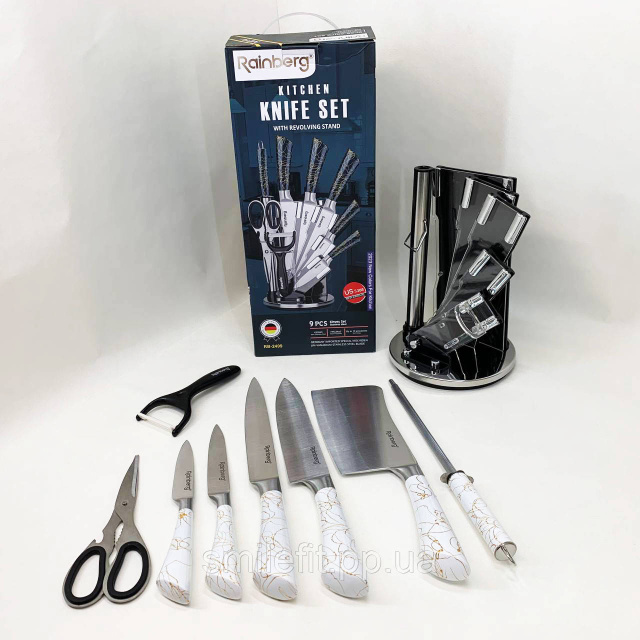 Набір кухонних ножів Rainberg RB-2499 8 предметів на підставці, що обертається White, Київ