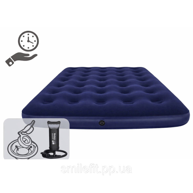 Зовнішній поршневий насос, що входить до комплекту, дозволяє швидко і легко надути матрац, зробивши його готовим до використання в найкоротший термін.
