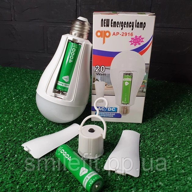 Лампа акумуляторна AP-6916 світлодіодна E27 20 W 6800 До автономна аварійна, з двома змінними акумуляторами 18650 в комплекті.