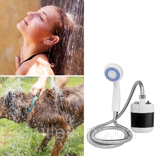 Похідний переносний душ Portable Outdoor Shower з акумулятором і зарядкою від USB стане в пригоді на дачі або в подорожі, тепер вам не потрібна шланг дешева лійка, оскільки має невеликі розміри та є переносним. Для душової системи вам знадобиться місткість із водою, у яку потрібно помістити душове обладнання насос і увімкнути живлення, шланг для душу неіржавкий. Потужний літій-іонний акумулятор забезпечує 2 години роботи після повного заряджання. Зарядити батарею можна через USB — просто під'єднайте USB-кабель до ноутбука, автомобільного адаптера або комп'ютера. Кріплення для тримача душової лійки можна розмістити в будь-якому місці — повісити на дерево за спеціальний гачок або приклеїти на гладку поверхню за допомогою присоска або в душову кабінку (скляне вікно, лобове скло автомобіля). З цим набором впорається будь-який чоловік чи жінка.