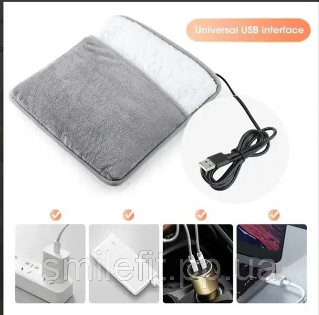 М'яка плюшева електрична грілка для ніг та рук 29х29 см з живленням від USB, Київ
