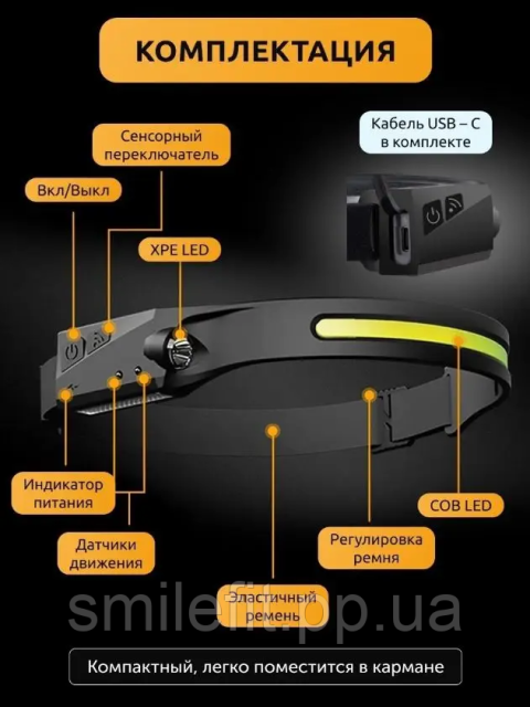 Світлодіодний налобний акумуляторний ліхтарик - необхідна річ для кожного справжнього чоловіка, рибалки та мисливця, велосипедиста та спортсмена, туриста та мандрівника. Налобний ліхтар дуже потужний, має 5 режимів роботи, час безперервного світіння до 8 годин, заряд витрачається економічно. Заряджається від USB-кабелю, що йде в комплекті. Головна стрічка кріплення регулюється. Корпус надійно захищений від вологи та пилу. Сенсорний перемикач дозволяє змінювати режими роботи навіть не торкаючись ліхтаря, а також є датчик руху! Ліхтарик налобний оснащений 2 видами свічення: світлодіодною стрічкою з 350 елементами та яскравим ліхтарем для далекого освітлення.