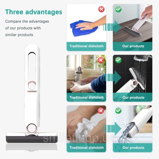 Віджимна швабра підходить для дому, ванної кімнати, кухні, квартири, гуртожитку, школи, офісу, ресторану, гаража, підвалу та навіть стін та вікон.