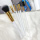 Материал кистей искусственный, что значительно продлевает сроки их использования и экономит расход средств. Ручки кистей выполнены так, что ими удобно наносить макияж и легко работать как профессионалу так и новичку.