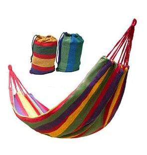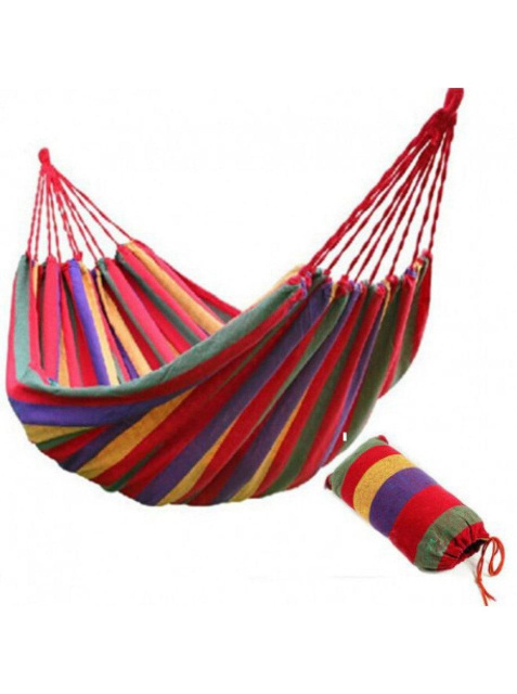 Гамак подарит Вам комфортный отдых на природе. Он выполнен из высокопрочного хлопка и способен выдерживать нагрузку до 120 килограмм. Данная модель гамака выполнена без планки, он легкий и компактный, поставляется в хлопковом мешочке-чехле. Такой гамак можно взять с собой в поход – в сложенном виде он занимает очень мало места.