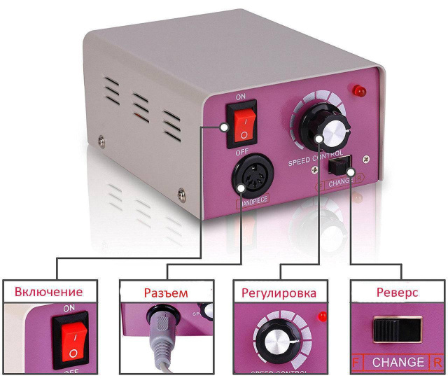 Машинка для маникюра и педикюра Beauty nail NN 25000 ,25 тыс оборотов отлично подойдет для машинного маникюра, педикюра и коррекции искусственных ногтей. Плавная регулировка оборотов от очень низких до высоких–25000 об/мин. Реверс – изменение направления вращения фрезы. Ножная педаль выполняет функции включения и выключения мотора и сделает вашу работу более комфортной. Удобная подставка под ручку.
